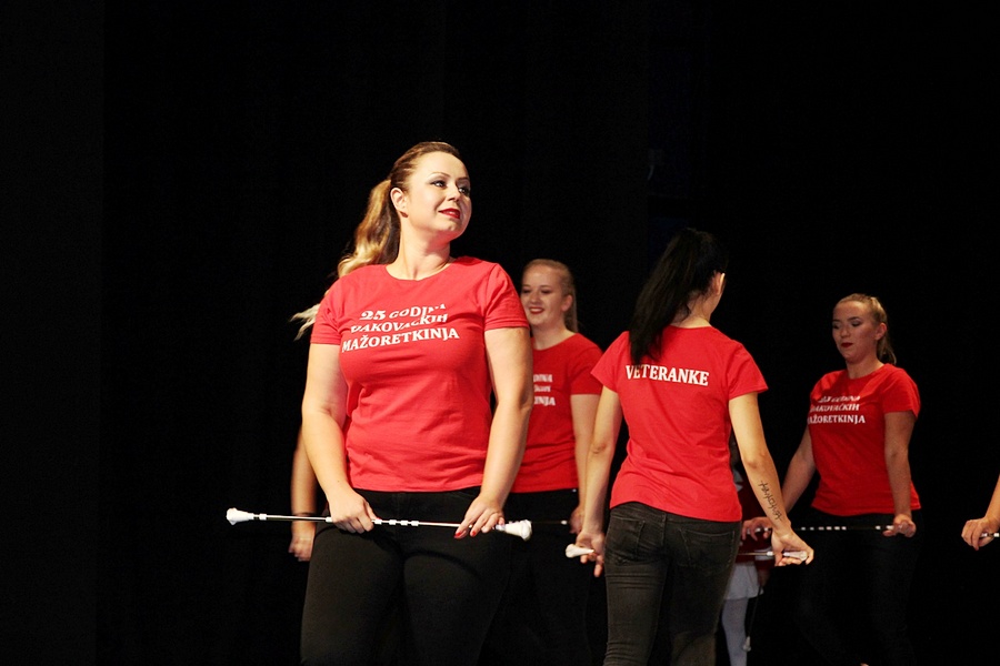 “Večer plesa, zabave, suradnje, truda, upornosti, radosti i glazbe”, kako ju je nazvala voditeljica programa Katarina Horvat, završena je koreografijom sa svjetlećim štapovima u mraku pozornice i dvorane – uz pogašena svjetla reflektora. Atrakcija je to koju mažoretkinje izvode već 20 godina, točka u kojoj spretna vrtnja štapovima djeluje poput zaigranih krijesnica koje rasvjetljuju tamu. – Bez mažoretkinja Đakovo ne bi bilo to što je. Mislim da su one postale jedan od “živih” brendova ovoga grada i da će tako biti i kada budemo slavile 50 godina, zaključuje Kristina.