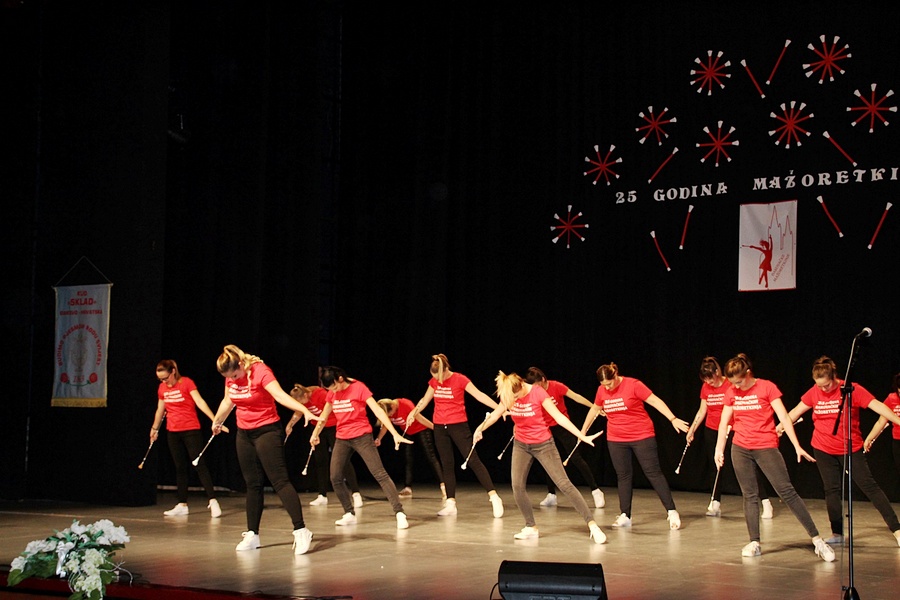 Publici su se predstavile sve skupine Đakovačkih mažoretkinja KUD-a Sklad. Plesni su program “crvene suknjice”, od onih najmlađih do najstarijih članica, otvorile zajedničkom koreografijom s četirima trenericama, scenom koja spaja generacije. Iznenađenje su pripremile seniorke koreografijom s pomponima – ukrasnim trakastim rekvizitima, nastalom u povodu 25. obljetnice, a gledateljima je bila posebno zanimljiva točka kojom su okupljene Skladove veteranke, povezavši koračnicu sa suvremenom glazbom, pokazale kako su mažoretkinje plesale nekad, a kako plešu u moderno doba. – U ovom su sastavu žene među kojima neke nisu plesale 15 godina, pa su za pripremu koreografije uložile zaista puno truda. Kako više nismo sve u Đakovu, koraci su se uvježbavali i video vezom, otkriva prvo lice Đakovačkih mažoretkinja Kristina Podgornik. Zna se, dodaje, da je osnova u izradi svake koreografije – bez obzira na skupinu i prigodu – izbor glazbe. Potom se slažu formacije, plesni koraci i rad sa štapom u jednu cjelinu.