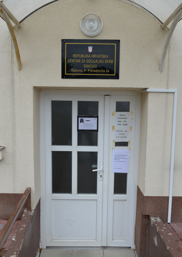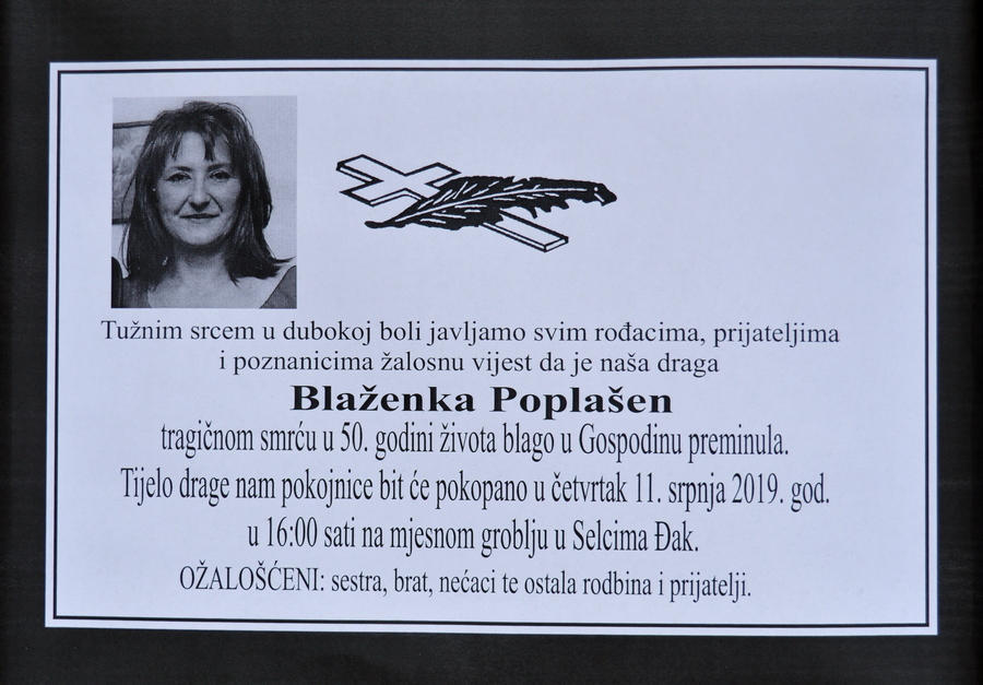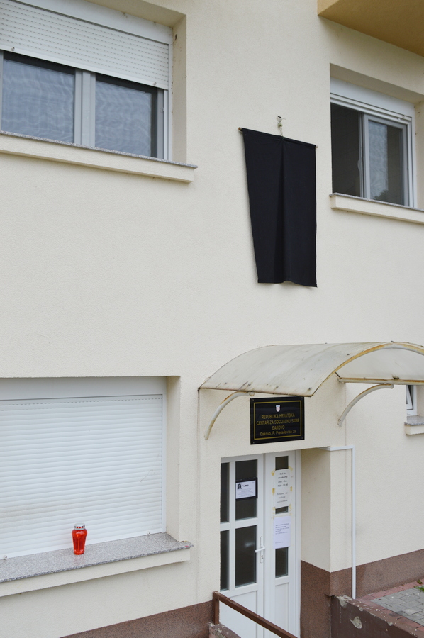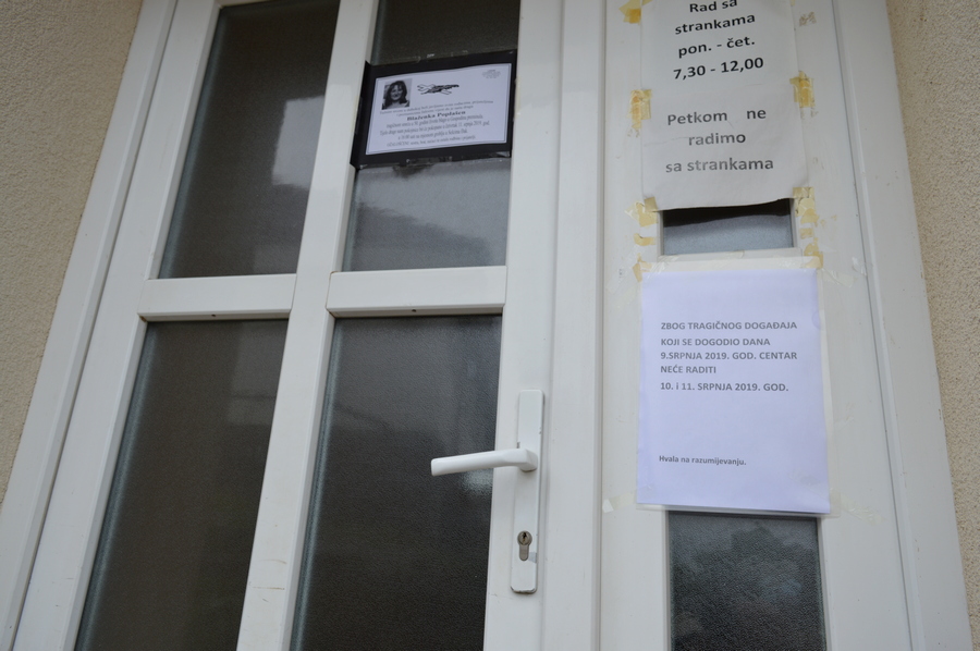 U prozorima Centra za socijalnu skrb zapaljene svijeće. Iznad ulaznih vrata, kroz koja je pokojna socijalna radnica Blaženka Poplašen jučer prošla posljednji put, crna zastava. Tišina. Na vratima osmrtnica s informacijom da će 50-godišnjakinja biti pokopana sutra u 16 sati na prigradskome groblju u Selcima Đakovačkim, gdje je žena živjela. Andrija Drežnjak (61), koji ju je brutalno usmrtio hicem iz pištolja, a njezinom kolegi pravniku Ivanu Paviću (35) zadao tešku ozljedu glave i mozga, sinoć je sa sobom u trenutku uhićenja imao oružje, 10.000 kuna i putovnicu. Implikacije su to pokušaja ubojičina bijega iz grada, vjerojatno izvan Hrvatske.
