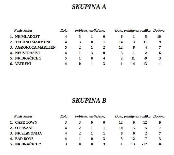 Trenutni poredak mlađih kategorija na malonogometnom božićnom turniru