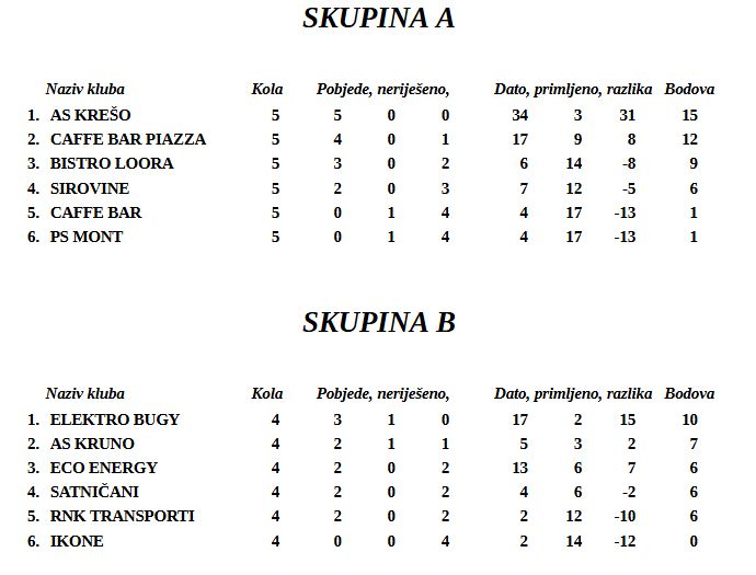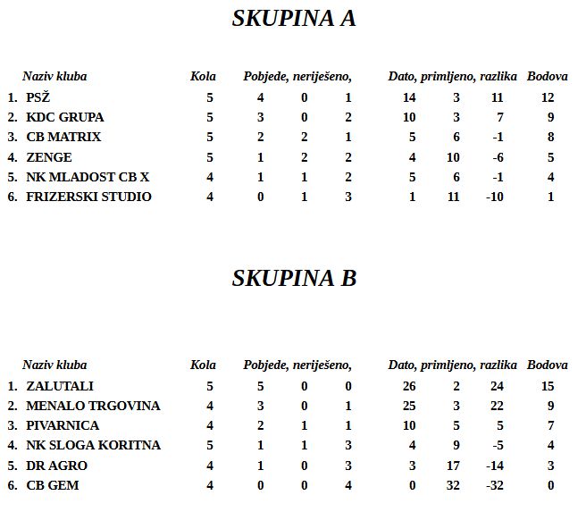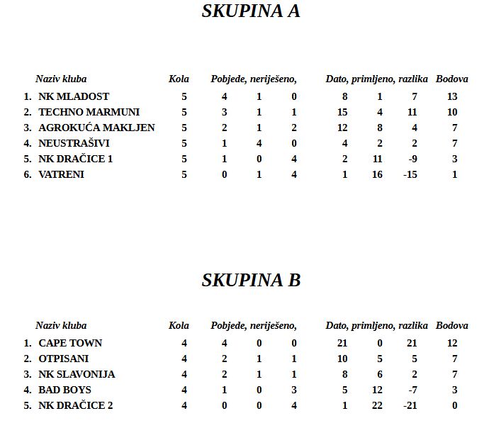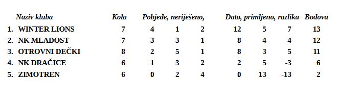 Trenutni poredak mlađih kategorija na malonogometnom božićnom turniru