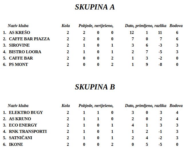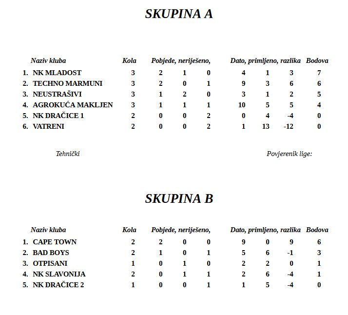 Trenutni poredak mlađih kategorija na malonogometnom božićnom turniru